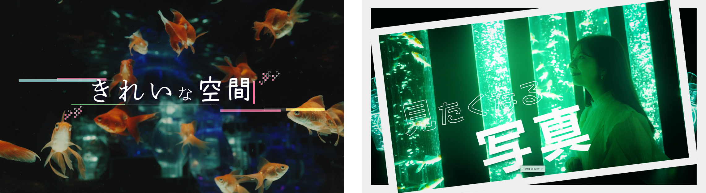 「映える、撮る、好きになる」のメッセージを、館内の幻想的な空間を映し出した映像にのせてお届けします。
