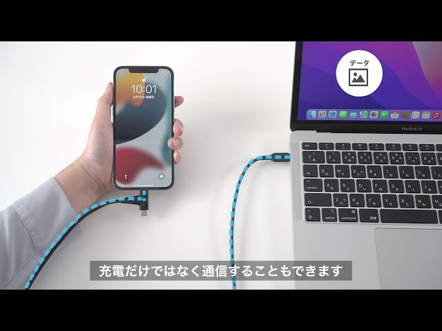 iPadやスマートフォン・タブレット・端末機器(USB Type-C端子を持つ機種)などと、MacやWindowsパソコンののUSB-CポートまたはThunderbolt 3(USB-C)ポートにつないで同期(データ通信)と充電ができたり、Type-C出力ポートを持つACアダプタ(充電器)やカーチャージャーなどを接続して充電ができます。