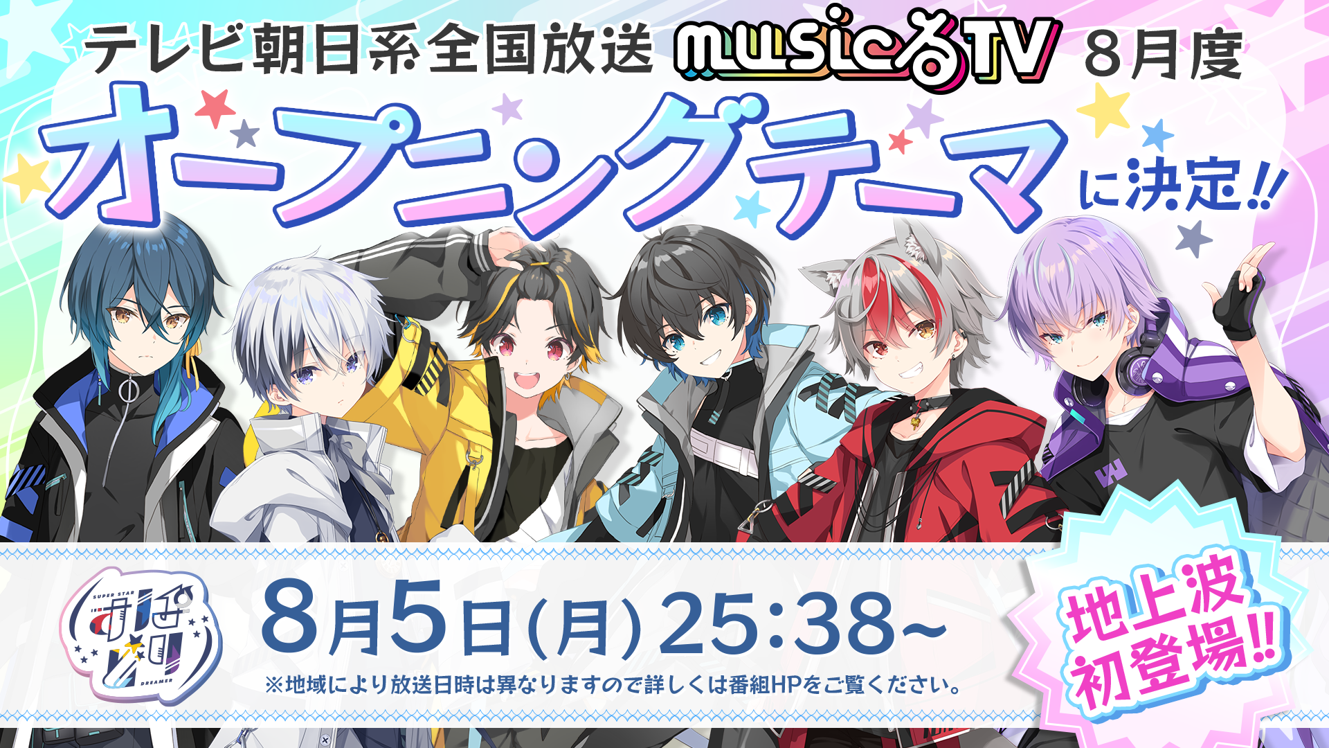 2.5次元IP開発、運営を行う株式会社ウタイテ(本社:東京都新宿区、代表取締役:倉田将志)は、テレビ朝日系列全国24局放送『musicるTV』の8月度オープニングテーマにUTAITE所属歌い手ユニット『すぱどり』の8月11日公開予定オリジナル曲『わちゃりっく☆パーリィ!』が決定したことをお知らせいたします。
