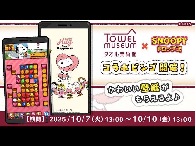 爽快パズルゲーム『スヌーピードロップス』が『タオル美術館』とのコラボイベントを初めて開催します!