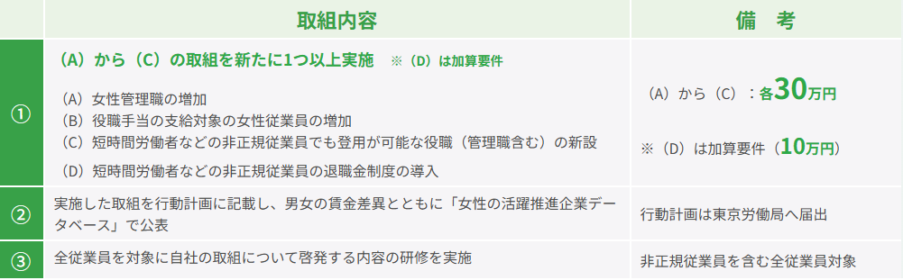 春は多くの企業で人事異動が行われるシーズンです。当奨励金の対象となる取組には、人事異動を伴うものが含まれており、実施には期間が定められています。