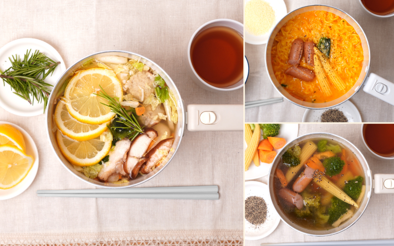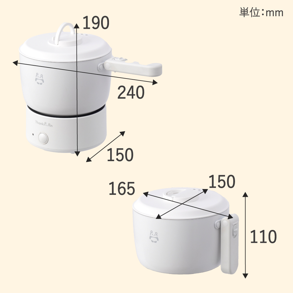 サイズは幅240×奥行150×高さ190(mm)。ラーメンやポトフなど、自分専用の鍋料理が手軽に楽しめます。