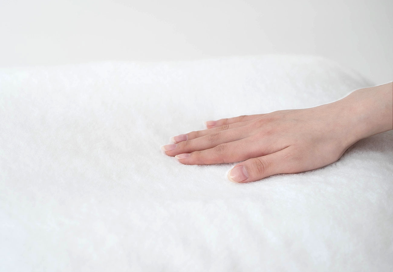 掛け寝具は身体にフィットするほど保温性が高まるため、冬寝具を選ぶ際にフィット性は指標のひとつとなります。タオル寝具は一般的な掛け布団や毛布に比べて柔らかいため、身体に寄り添うようにフィット。また、毛足(パイル)の長いタオル素材は空気をたっぷりと含むことで、自然な暖かさを維持します。