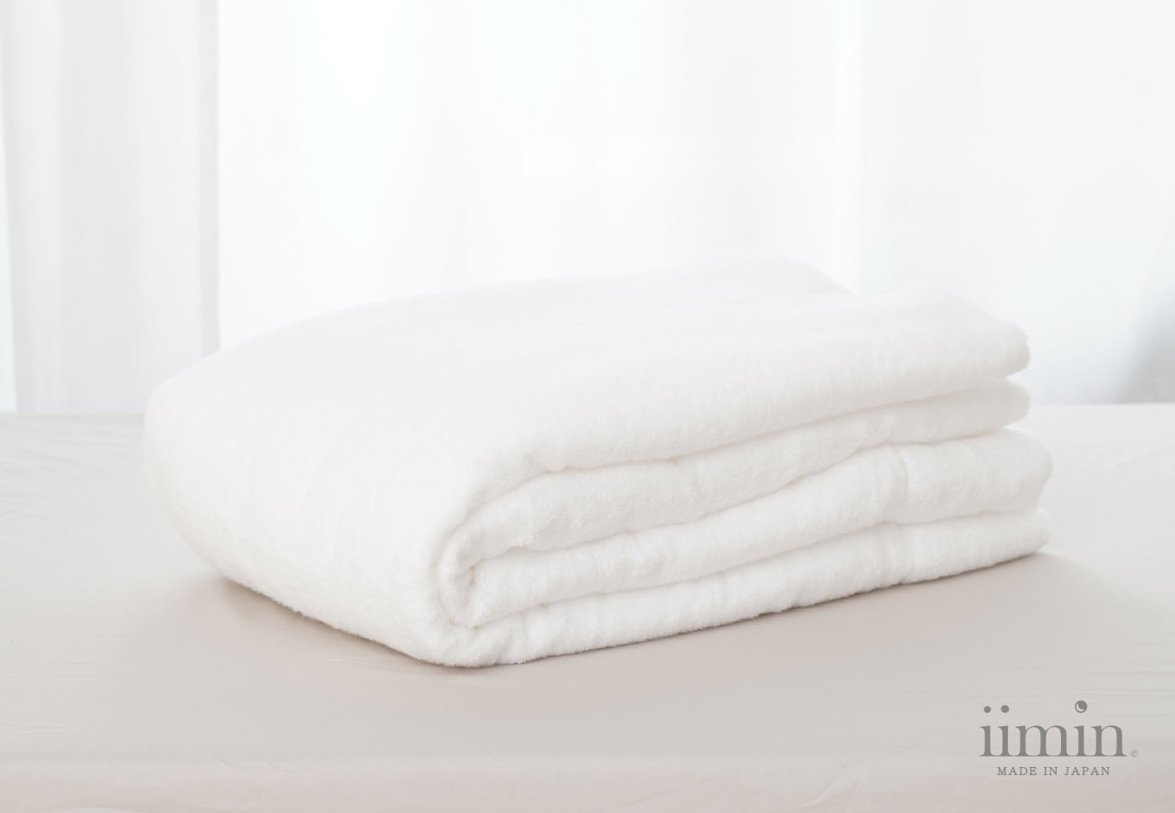 タオルの名産地として知られる愛媛県今治市では、美しく豊かな水資源に支えられ、百十余年の伝統と最新技術をたくみに融合させながら優れた品質のタオルがつられています。そんな今治市で生まれた高品質タオルブランド「今治タオル」。「iimin 今治タオル毛布」では、厳しい品質基準をクリアした今治タオルを贅沢に使用しています。