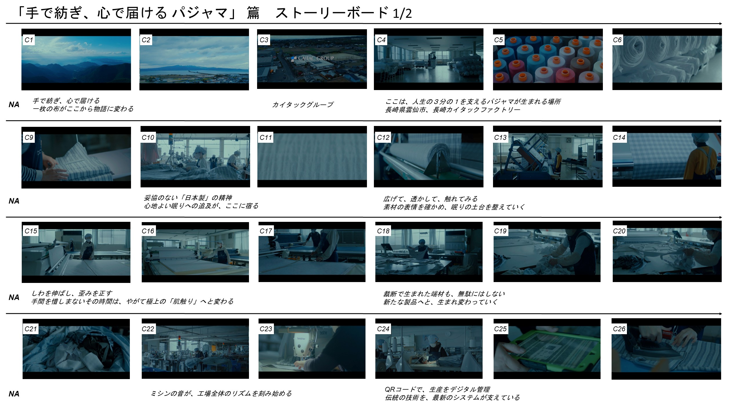 本作では、裁断・縫製・加工・仕上げ・検品といった工程を通して、カイタックグループが大切にしてきた「チームでつくる品質」と「暮らしへのまなざし」を、静かに描いています。